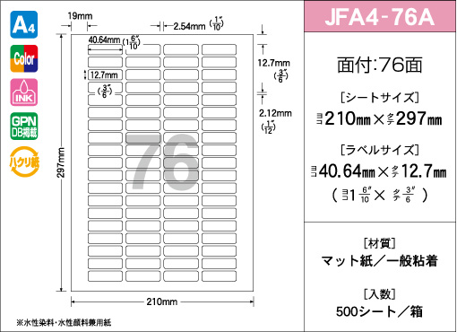 A4サイズ 76面タイプ(A)(インクジェットマット紙) 500シート入